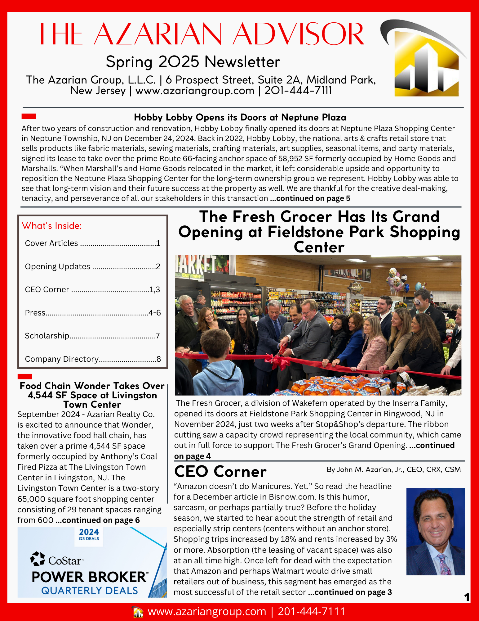 The semi-annual issue of The Azarian Advisor is here! Click here to download the Fall 2025 Newsletter.